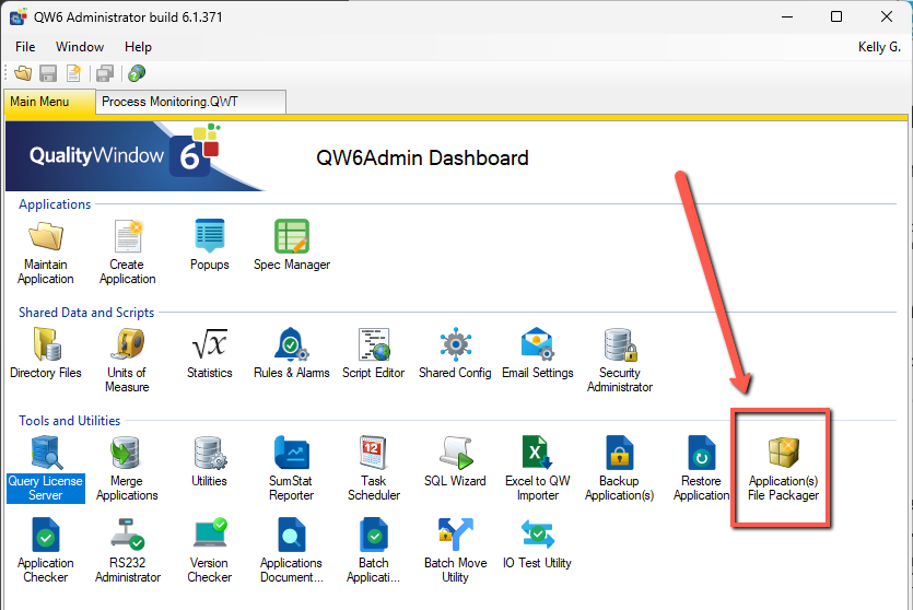 - In the list of modules locate the Application File Packaging module in the Tools and Utilities section and Click on the Icon.